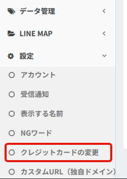 登録したクレジットカードの変更は、左メニューの「設定」の中にある「クレジットカードの変更」からご変更いただけます。